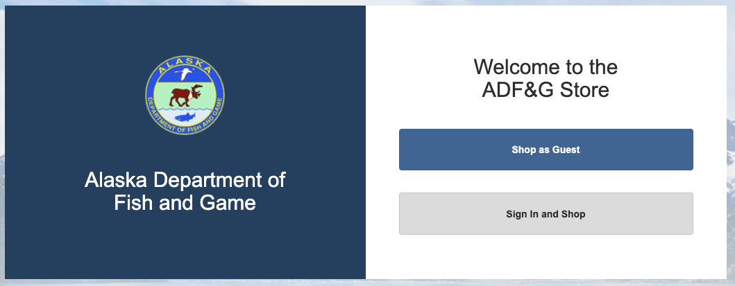 Go to the Hunting section of the Alaska Department of Fish and Game website and click the “Get License, Tags, & Selected Permits” button at the top of the page.